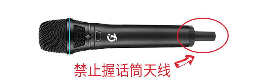 無線話筒使用時禁忌握住話筒底部的天線發射端,由于無線話筒屬于發射器,一般天線位于話筒底端,握住話筒底端會導致發射信號屏蔽而大幅度衰減,容易引起話筒聲音不穩定,甚至斷頻。